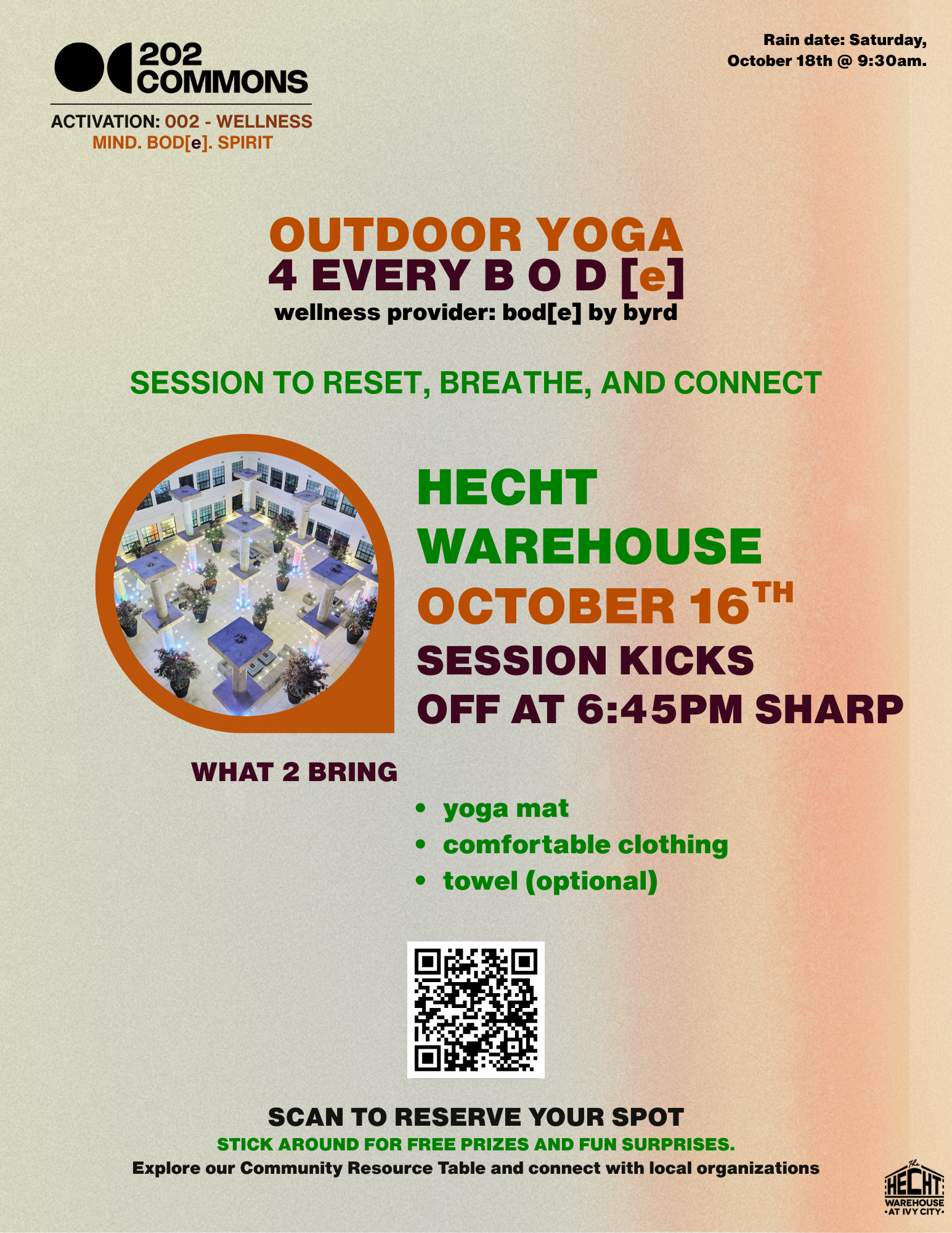 After yoga, explore our Community Resource Table with local wellness and support services, enjoy refreshments, and stick around for raffles + giveaways.
